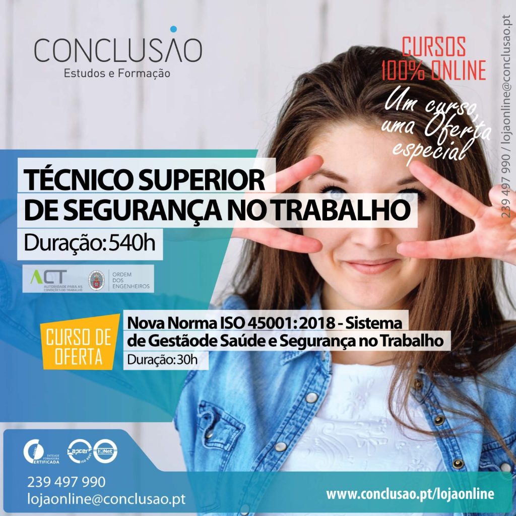A Campanha do curso de Técnico Superior de Segurança no Trabalho entra em vigor hoje, dia 28 de abril de 2022, e o seu término é dia 02 de Maio. Como tal, nas primeiras 3 compras do curso de Técnico Superior de Segurança no Trabalho oferecemos o curso de Nova Norma ISO 45001:2018 – Sistema de Gestão de Saúde e Segurança no Trabalho.